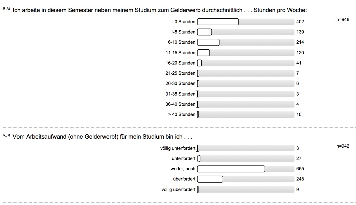 | Fragen zum Gelderwerb, Arbeitsaufwand, Anspruchsniveau und Studienverlauf |